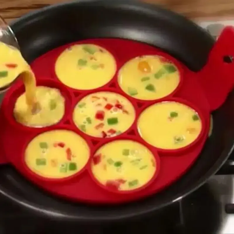 تصميم سيليكون مبتكر: هذه الحلقات مصنوعة من سيليكون عالي الجودة، مما يضمن لك تحضير الفطائر والبيض بشكل منظم، مع الحفاظ على الشكل المثالي دون تسرب المكونات. ✨